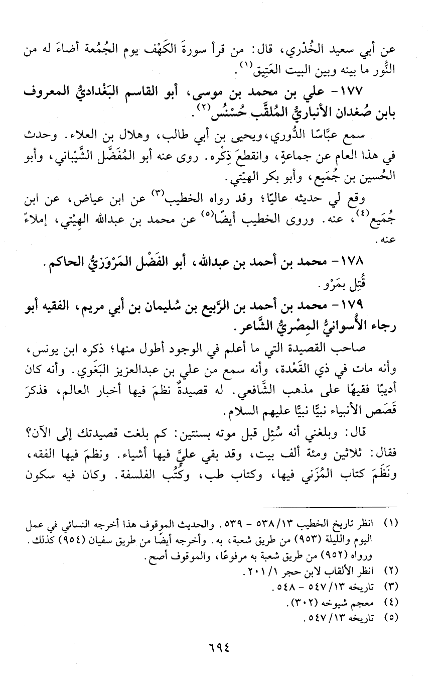 177 - عليّ بن محمد بن موسى، أبو القاسم البغداديّ، المعروف بابن صُغدان الأنباريّ المُلقَّب حُسْنُس. [المتوفى: 335 هـ]