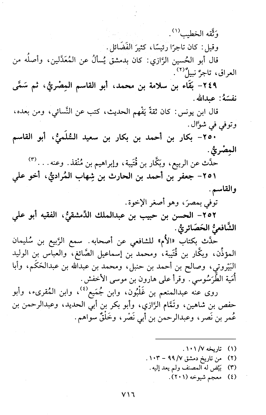 252 - الحسن بن حبيب بن عبد الملك الدّمشقيُّ، الفقيه أبو عليّ الشّافعيُّ الحصائريُّ. [المتوفى: 338 هـ]