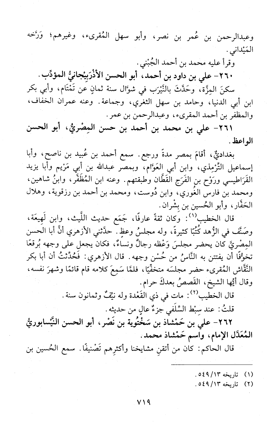 261 - علي بن محمد بن أحمد بن حسن المِصريُّ، أبو الحسن الواعظ. [المتوفى: 338 هـ]