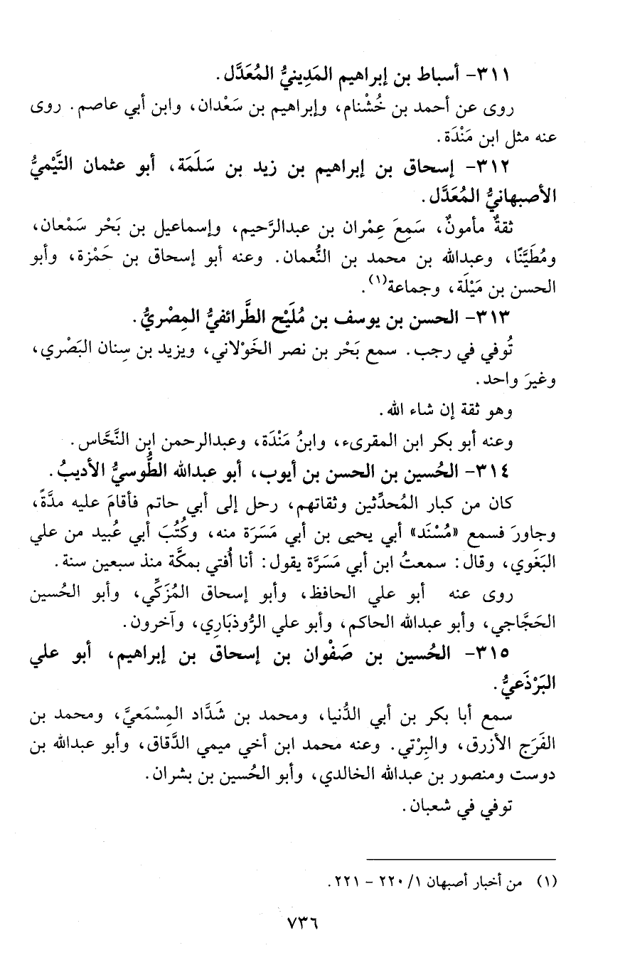 312 - إسحاق بن إبراهيم بن زيد بن سَلَمَة، أبو عثمان التَّيْميُّ الأصبهانيُّ المُعَدَّل. [المتوفى: 340 هـ]