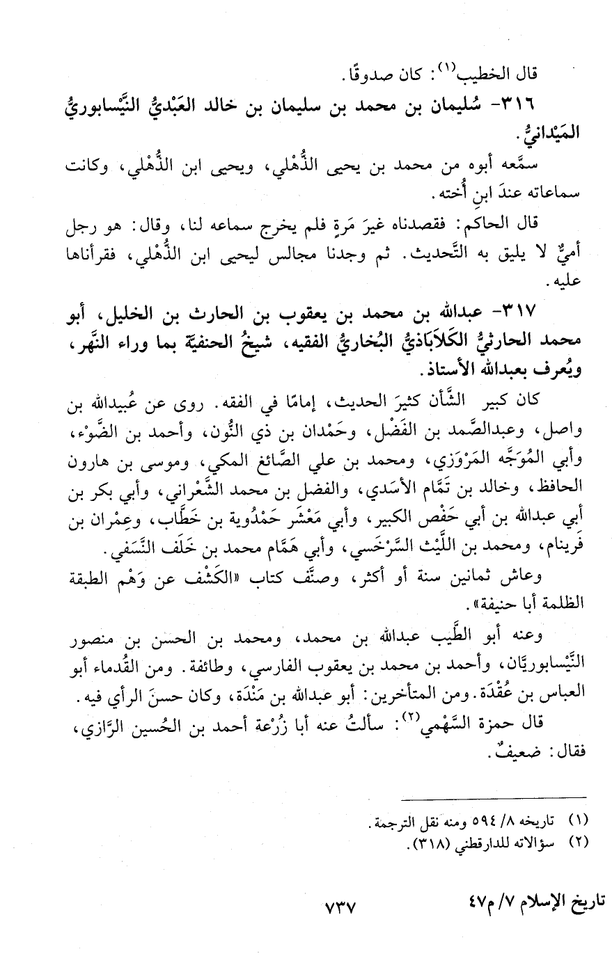 316 - سُلَيْمَان بْن محمد بْن سُلَيْمَان بْن خَالِد العَبْدي النَّيْسَابوريّ المَيْدانيّ. [المتوفى: 340 هـ]