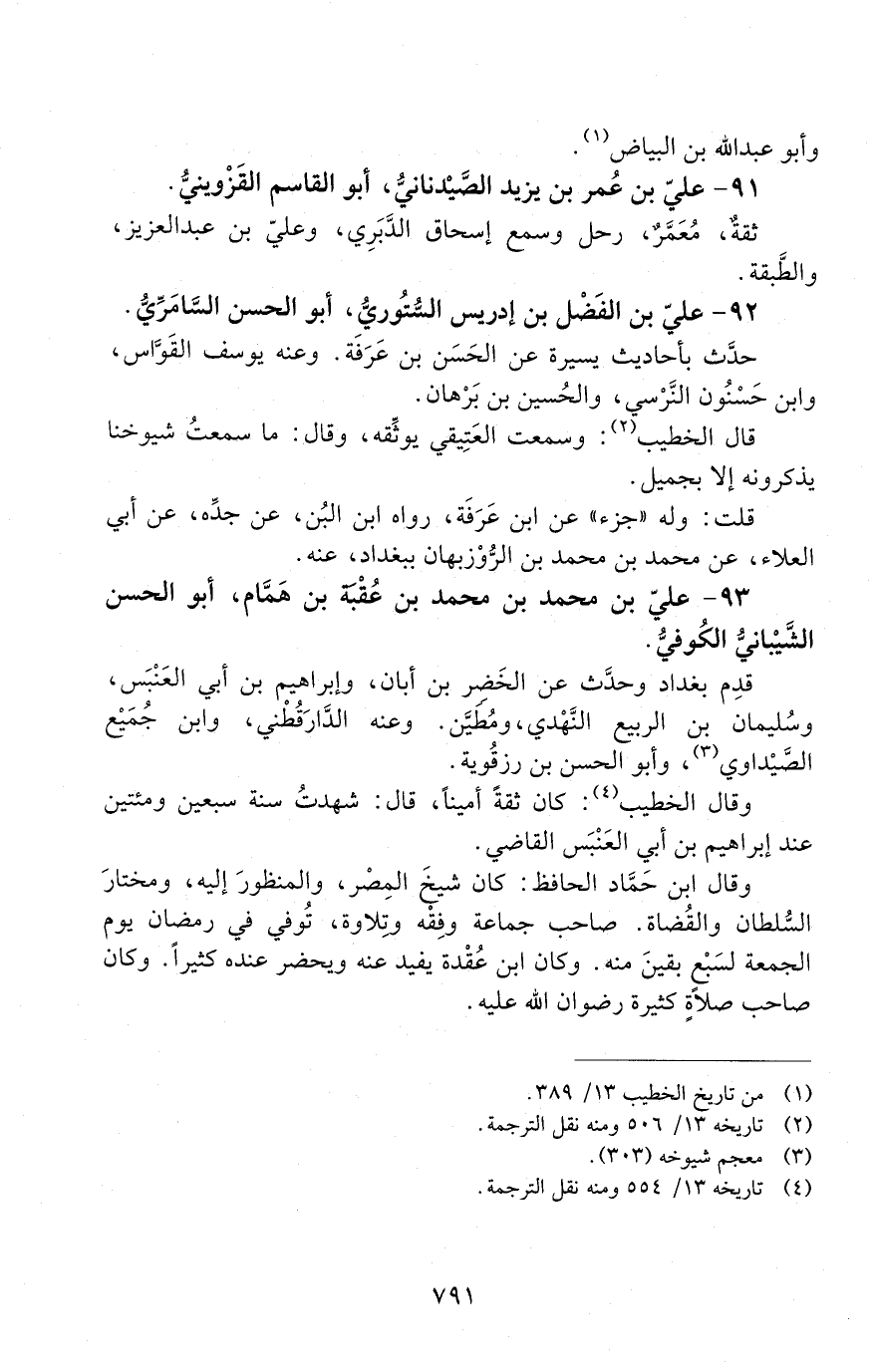 91 - عَلِيّ بْن عُمَر بْن يزيد الصَّيْدنانيّ، أَبُو القاسم القَزْوِينيّ. [المتوفى: 343 هـ]