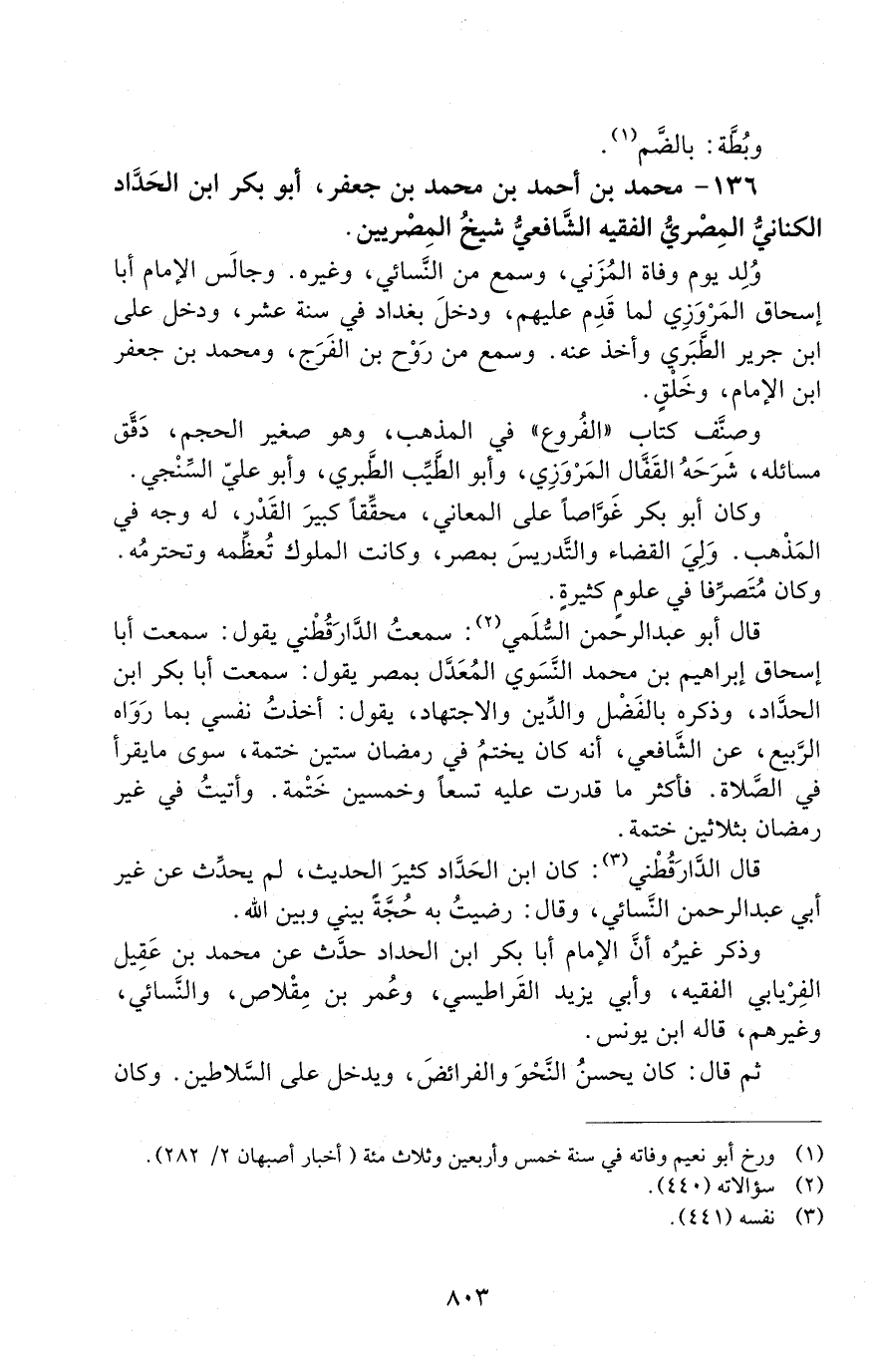 136 - محمد بْن أَحْمَد بْن محمد بْن جعْفَر، أَبُو بَكْر ابْن الحدّاد الكنانيُّ المصري، الفقيه الشافعي [المتوفى: 344 هـ]