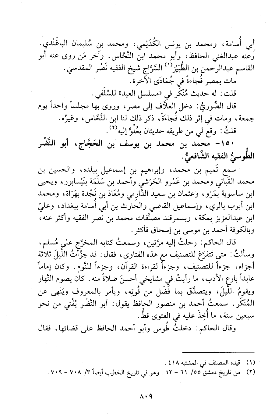 150 - محمد بْن محمد بْن يوسف بْن الحَجّاج، أَبُو النَّضْر الطُّوسيّ، الفقيه الشَّافعيُّ. [المتوفى: 344 هـ]