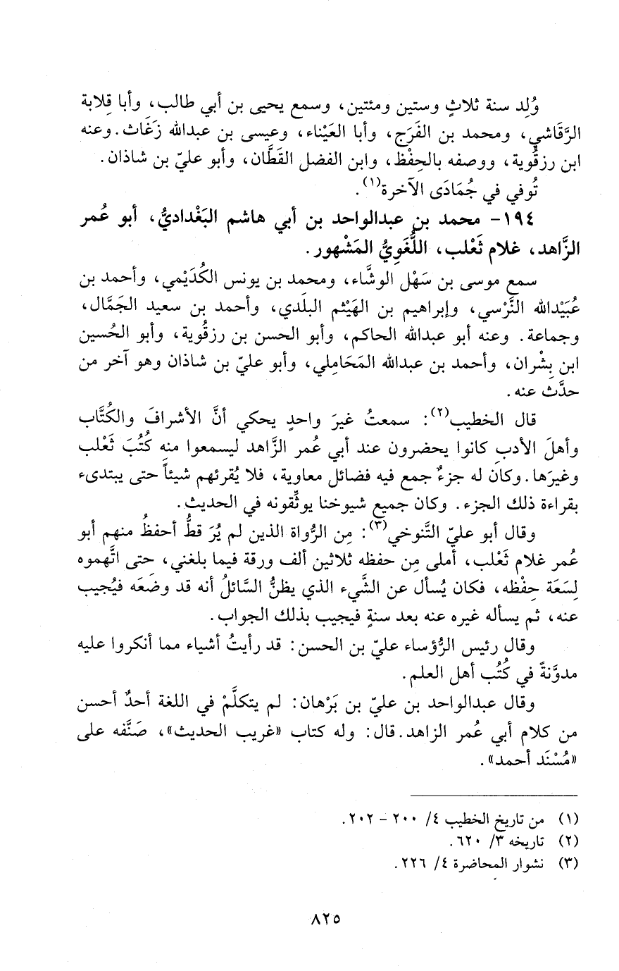 194 - محمد بْن عَبْد الواحد بْن أَبِي هاشم البغداديّ، أَبُو عُمَر الزّاهد، غلام ثعلب، [المتوفى: 345 هـ]