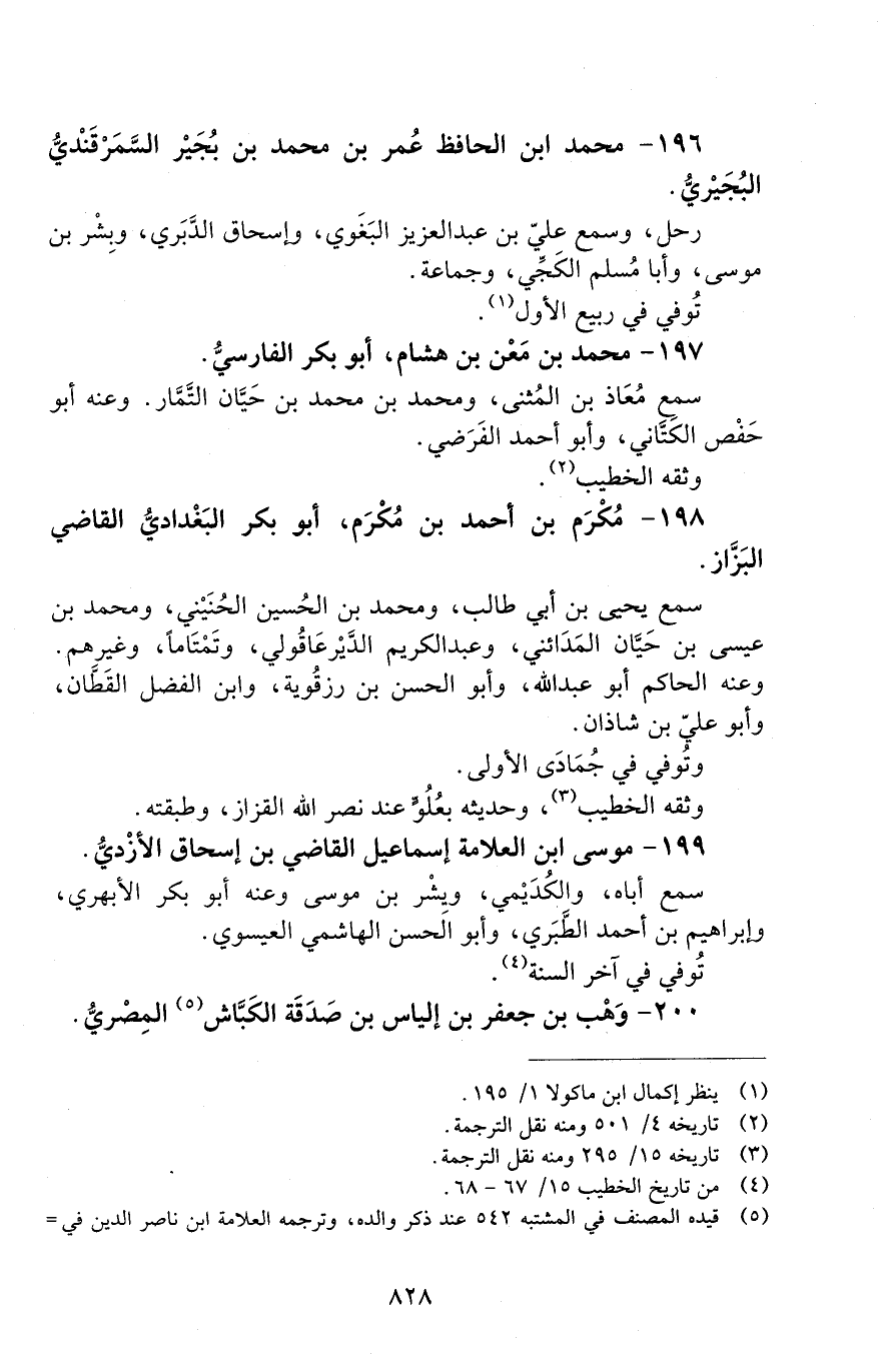 198 - مكرم بْن أَحْمَد بْن مُكْرم، أَبُو بَكْر البغداديّ القاضي البزّاز. [المتوفى: 345 هـ]