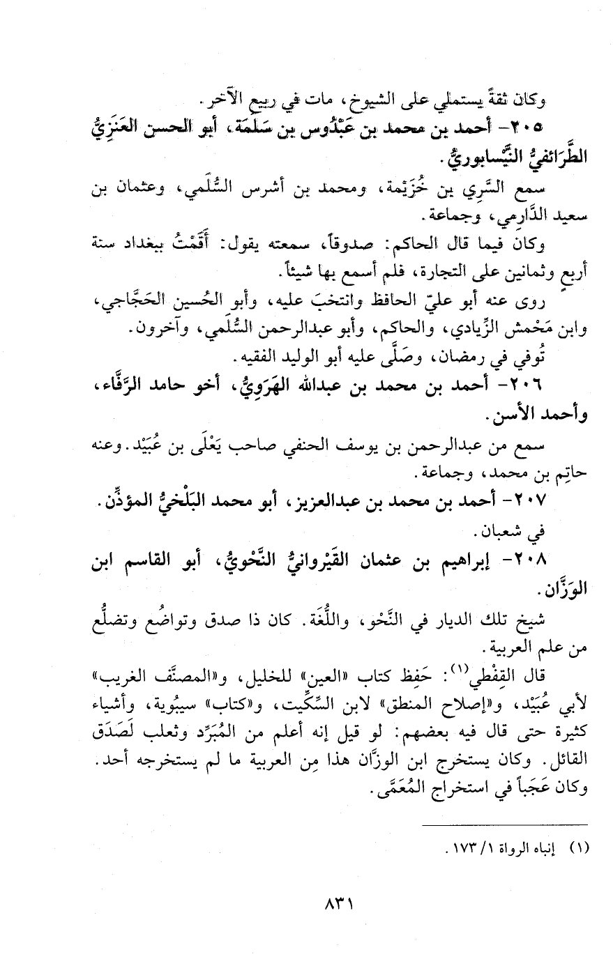 205 - أَحْمَد بْن محمد بْن عَبْدُوس بْن سَلَمَةَ، أبو الْحَسَن العَنَزِيّ الطَّرَائفيّ الَّنْيسابوريّ. [المتوفى: 346 هـ]
