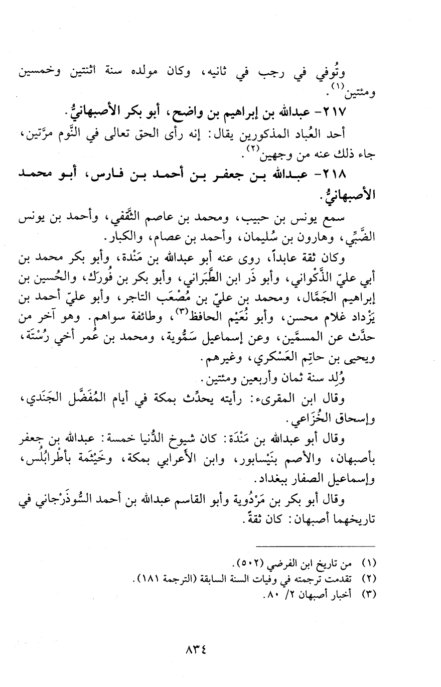 217 - عَبْد اللَّه بْن إبْرَاهِيم بْن واضح، أَبُو بَكْر الأصبهانيّ. [المتوفى: 346 هـ]