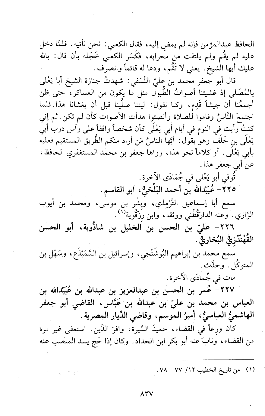 227 - عُمَر بْن الْحَسَن بْن عَبْد الْعَزِيزِ بْنُ عَبْدِ اللَّهِ بْنُ عُبَيْدِ اللَّهِ بْن الْعَبَّاسُ بْن مُحَمَّدِ بْن عَلِيّ بْن عَبْد اللَّه بْن عباس، القاضي أَبُو جعْفَر الهاشميّ العباسي، [المتوفى: 346 هـ]