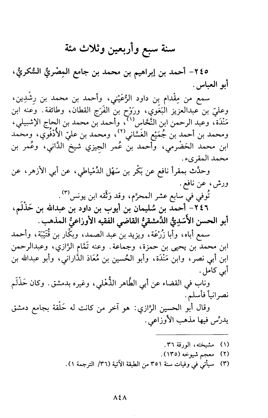 246 - أَحْمَد بْن سُلَيْمَان بْن أيّوب بْن دَاوُد بْن عَبْد اللَّه بْن حَذْلَم، أَبُو الْحَسَن الأَسَدِيّ الدّمشقيّ القاضي الفقيه. الأوزاعيّ المذهب. [المتوفى: 347 هـ]