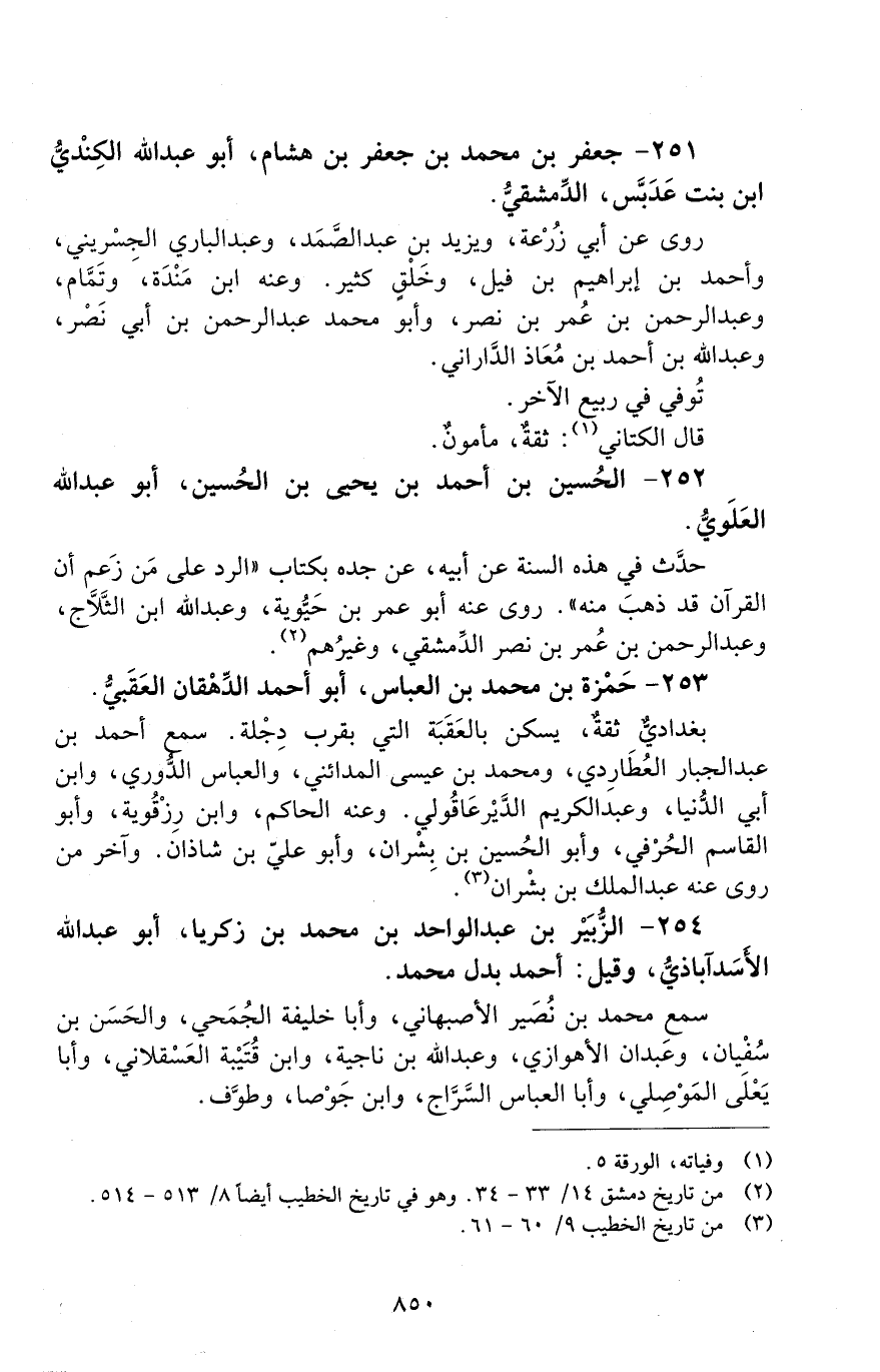 254 - الزُّبَيْر بْن عَبْد الواحد بْن مُحَمَّد بْن زكريّا، أبو عبد الله الأسَدَاباذيّ؛ وقيل: أَحْمَد بدل محمد. [المتوفى: 347 هـ]