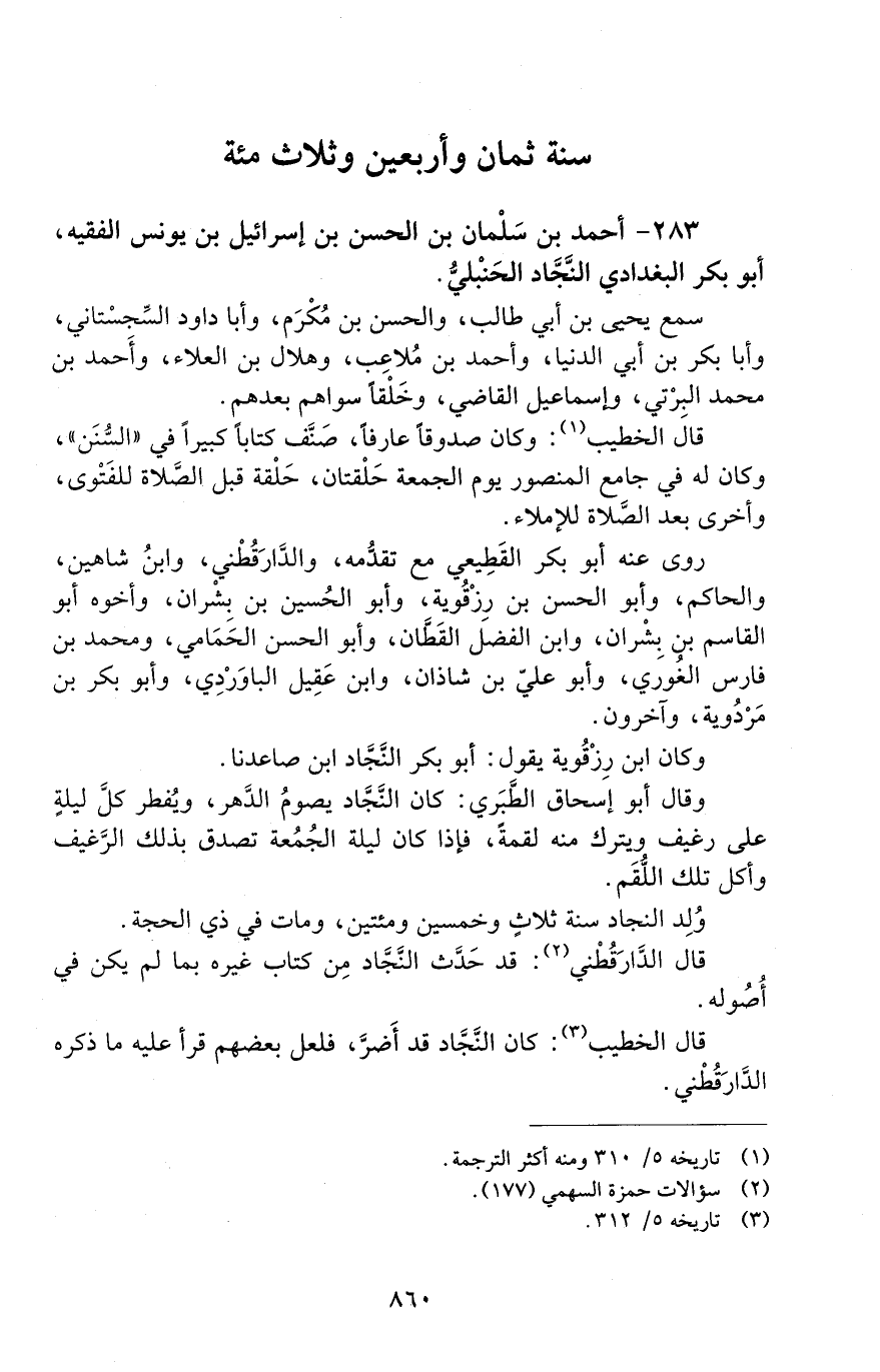 283 - أحمد بْن سلْمان بْن الْحَسَن بْن إسرائيل بْن يونس الفقيه، أَبُو بَكْر البغداديّ النّجّاد الحنبلي. [المتوفى: 348 هـ]