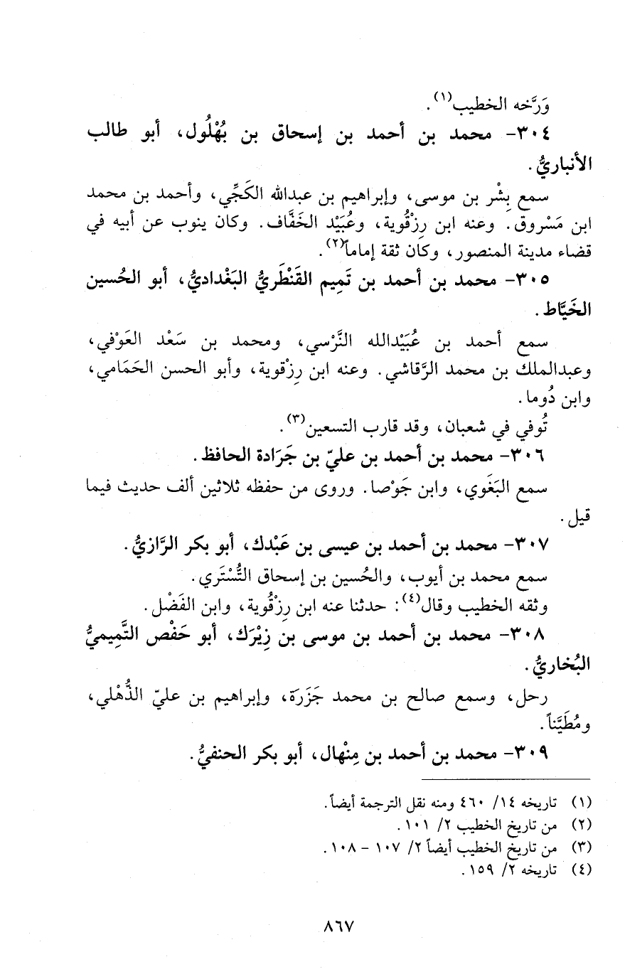 305 - محمد بْن أَحْمَد بْن تميم القنْطَريّ البغداديّ، أَبُو الْحَسَين الخيّاط. [المتوفى: 348 هـ]