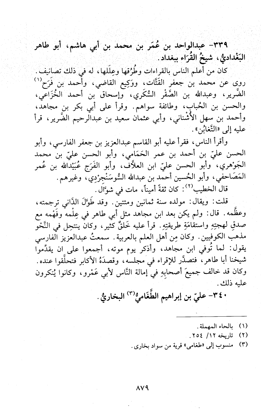 339 - عَبْد الواحد بْن عُمَر بْن محمد بْن أَبِي هاشم، أَبُو طاهر البغداديّ، [المتوفى: 349 هـ]