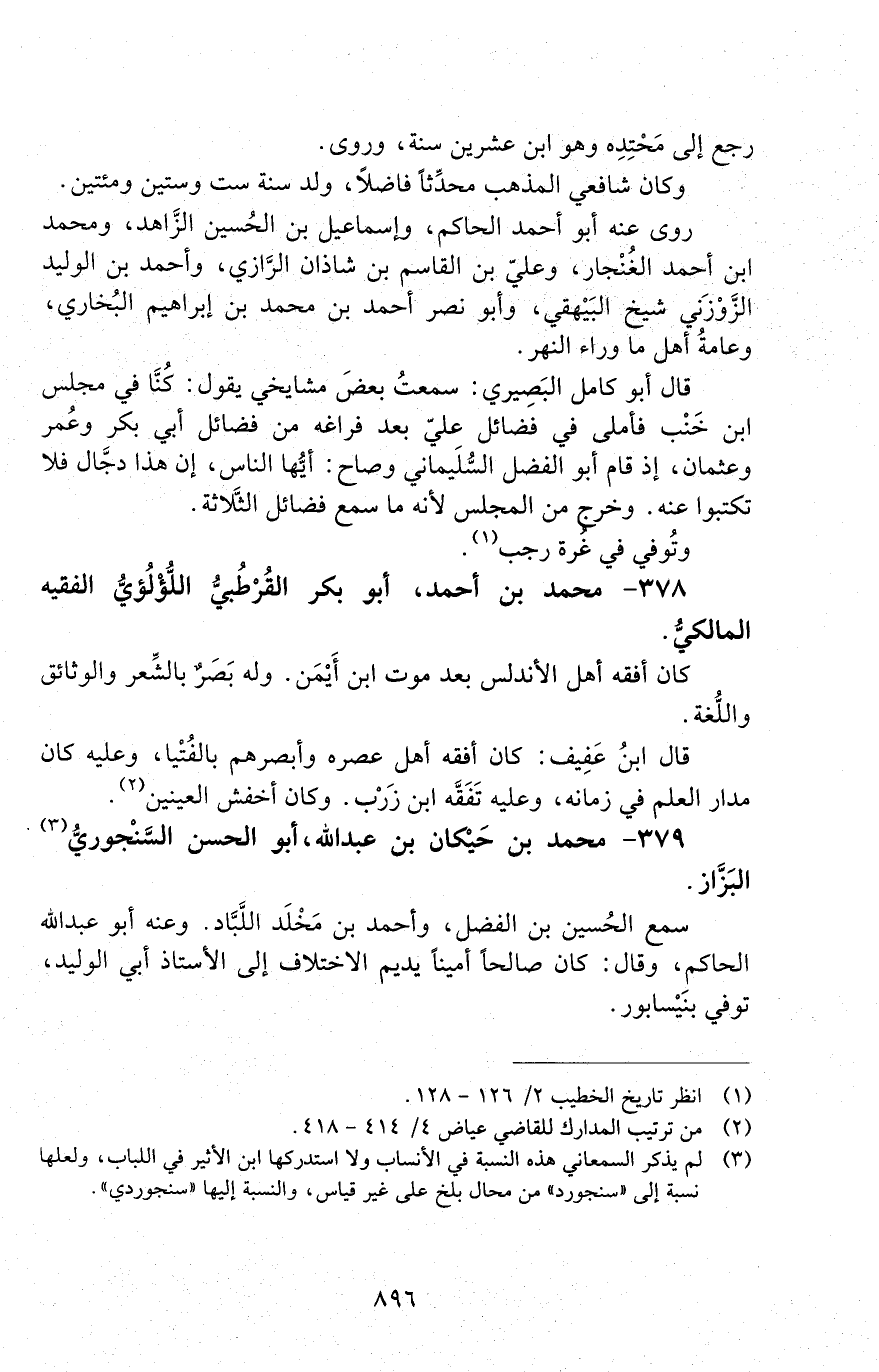 379 - محمد بْن حَيْكان بْن عَبْد اللَّه، أَبُو الْحَسَن السنجوري البَزَّاز. [المتوفى: 350 هـ]