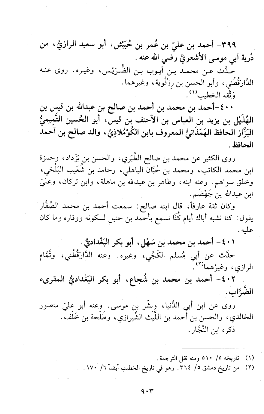 401 - أحمد بن محمد بن سهل، أبو بكر البغداديّ. [الوفاة: 341 - 350 هـ]
