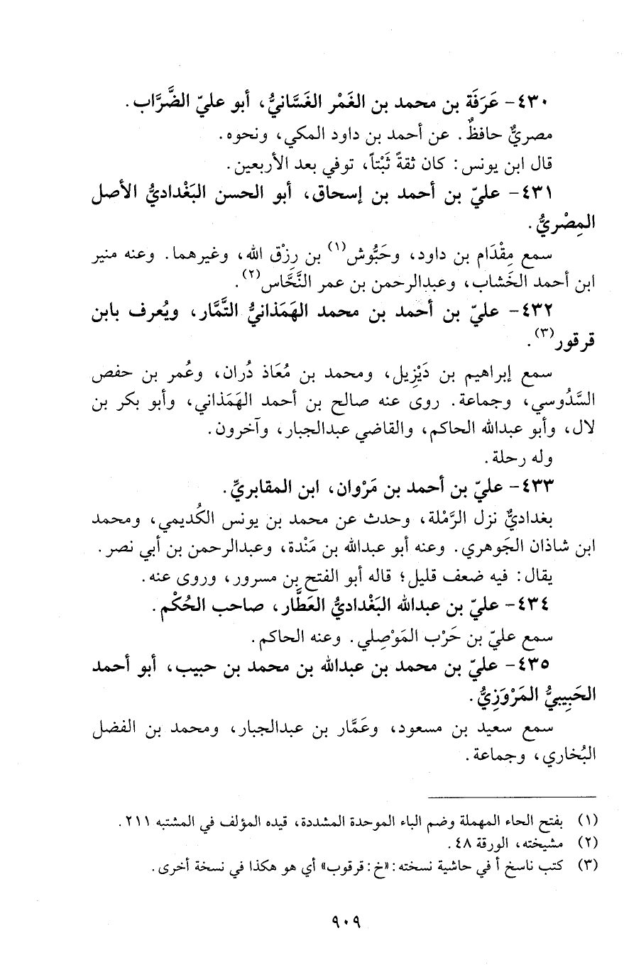 435 - علي بْن مُحَمَّد بْن عَبْد اللَّه بْن مُحَمَّدِ بْن حبيب، أَبُو أَحْمَد الحَبِيبيّ المَرْوزِيّ. [الوفاة: 341 - 350 هـ]