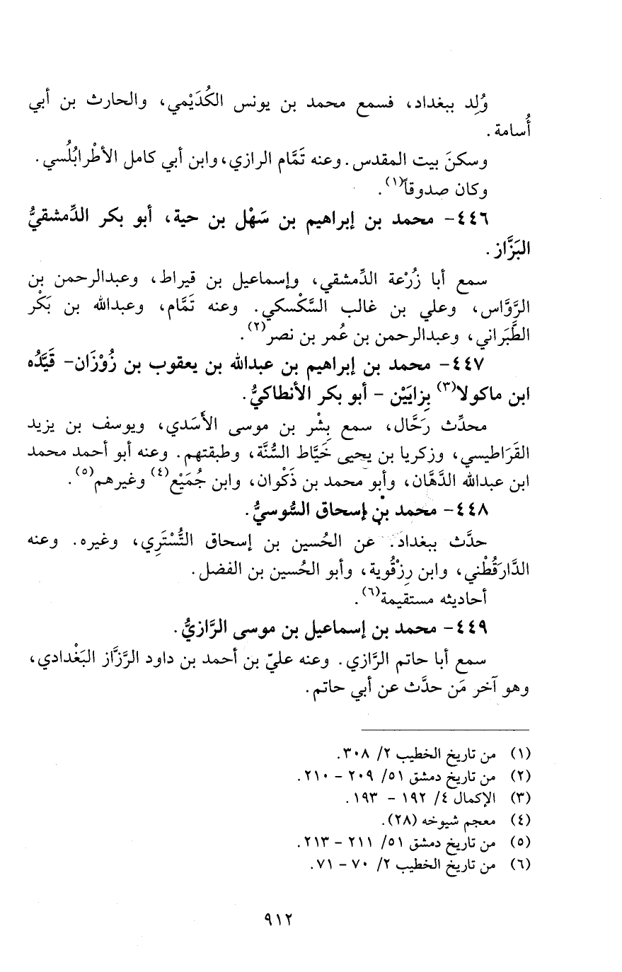446 - محمد بْن إبْرَاهِيم بْن سهل بْن حيّة، أَبُو بَكْر الدّمشقيّ البزّاز. [الوفاة: 341 - 350 هـ]
