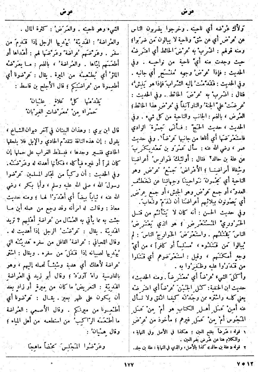 ؛ العُرض، بِالضَّمِّ: الْجَانِبُ وَالنَّاحِيَةُ مِنْ كُلِّ شَيْءٍ. وَفِي الْحَدِيثِ، حَدِيثِ الحَجّ: