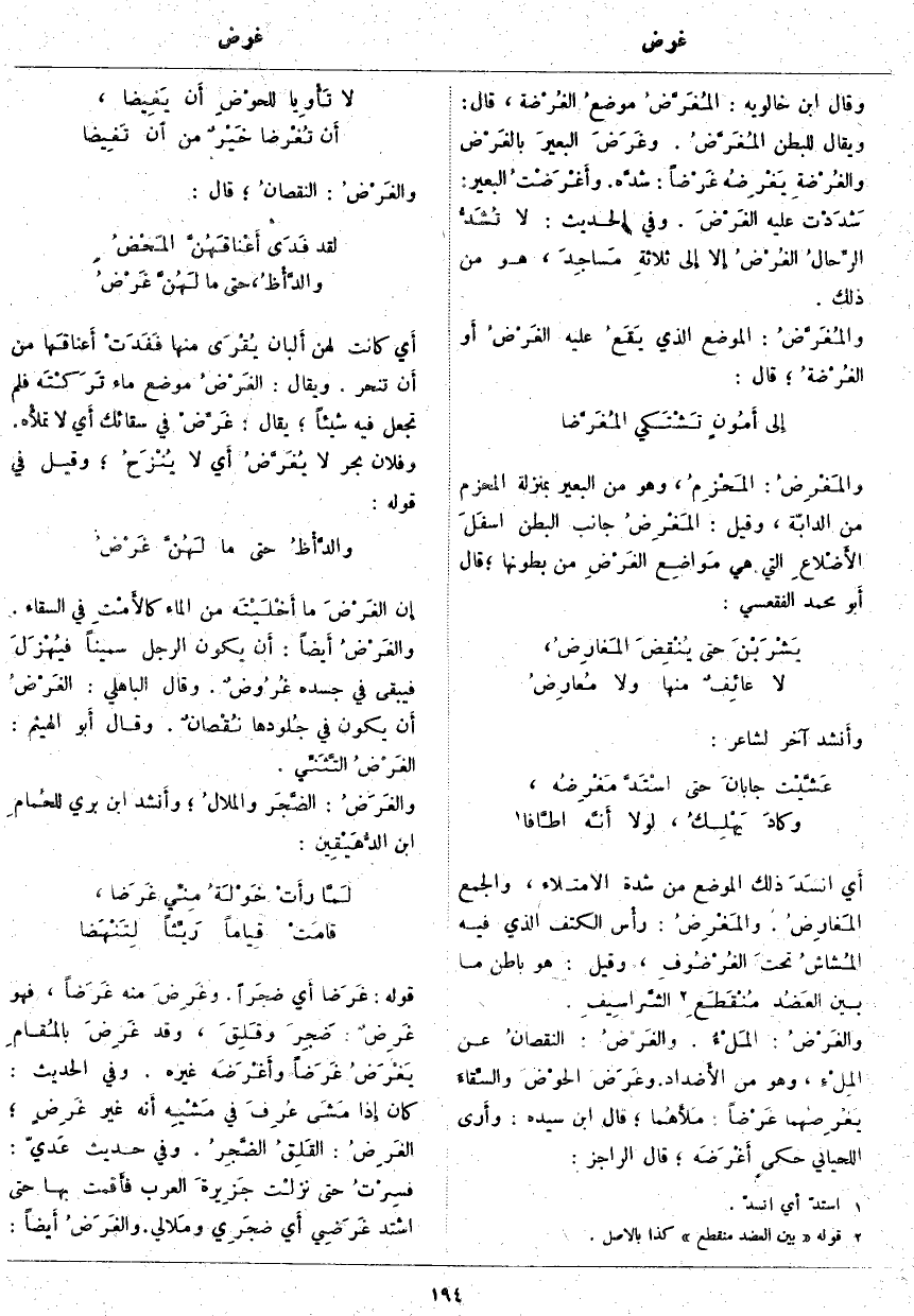 أَي انسَدَ ذَلِكَ الْمَوْضِعُ مِنْ شِدَّةِ الِامْتِلَاءِ، وَالْجَمْعُ المَغارِضُ. والمَغْرِضُ: رأْس الْكَتِفِ الَّذِي فِيهِ المُشاشُ تحتَ الغُرْضُوفِ، وَقِيلَ: هُوَ بَاطِنٌ مَا بَيْنَ العَضُدِ مُنْقَطَعِ «2» الشَّراسِيفِ. والغَرْضُ: المَلْءُ. والغَرْضُ: النقصانُ عَنِ المِلْءِ، وَهُوَ مِنَ الأَضداد. وغَرَضَ الحوْضَ والسِّقاءَ يَغْرِضُهما غَرْضاً: مَلأَهُما؛ قَالَ ابْنُ سِيدَهْ: وأَرى اللحياني حَكَى أَغْرَضَه؛ قَالَ الرَّاجِزُ: