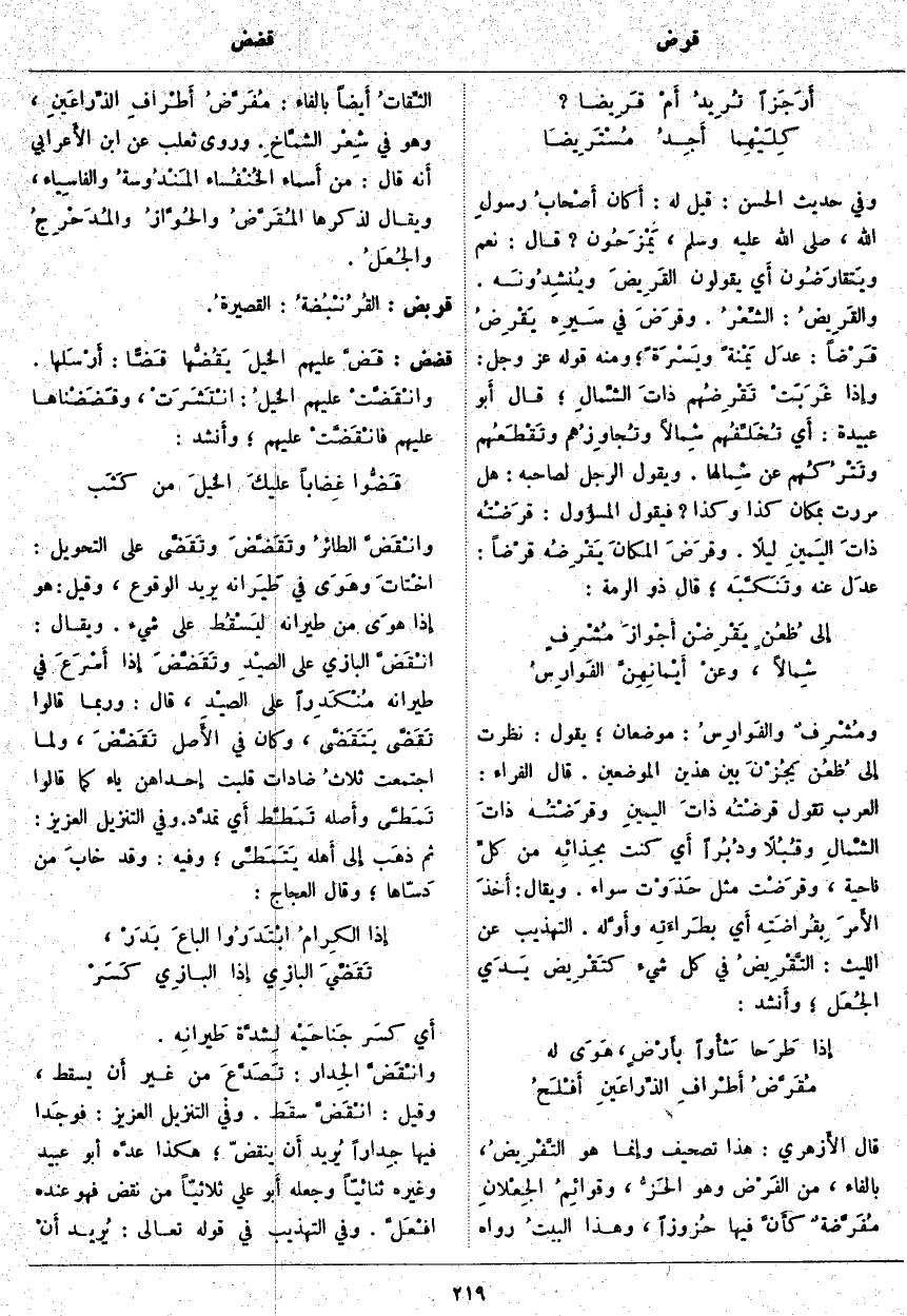 أَي يَقُولُونَ القَرِيضَ ويُنشِدُونَه. والقَرِيضُ: الشِّعْرُ. وقَرَضَ فِي سَيرِه يَقْرِضُ قَرْضاً: عدَل يَمْنةً ويَسْرَةً؛ وَمِنْهُ قَوْلُهُ عَزَّ وَجَلَّ: وَإِذا غَرَبَتْ تَقْرِضُهُمْ ذاتَ الشِّمالِ