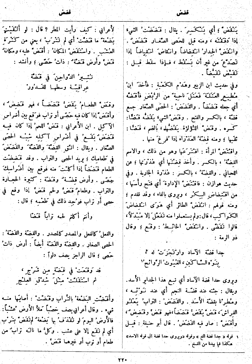والفعلُ كَالْفِعْلِ وَالْمَصْدَرُ كَالْمَصْدَرِ. والقِضّة والقَضّةُ: الْحَصَى الصِّغَارُ: والقِضّة والقَضّة أَيضاً: أَرض ذاتُ حَصى؛ قَالَ الرَّاجِزُ يَصِفُ دَلْوًا: