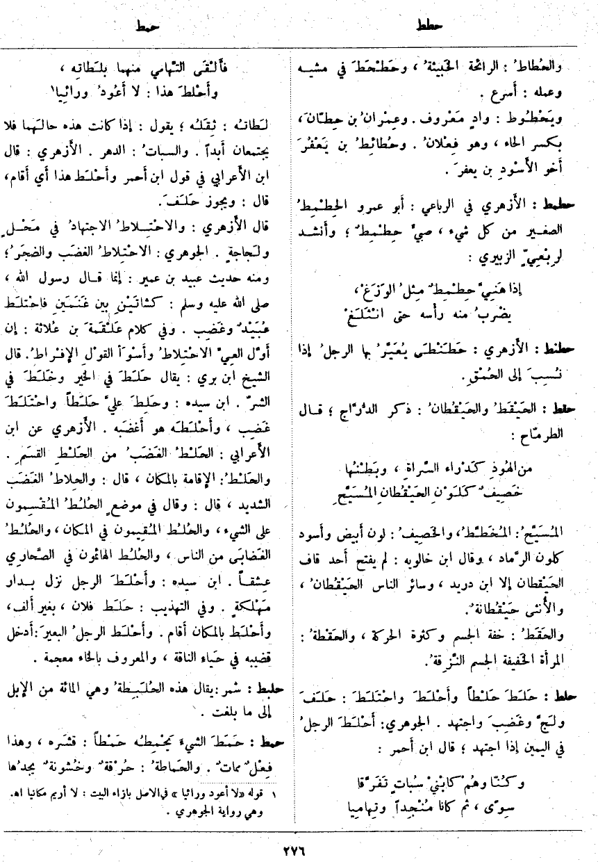 فأَلقَى التِّهامي مِنْهُمَا بلَطاتِه، ... وأَحْلطَ هَذَا: لَا أَعُودُ ورائِيا «1»
