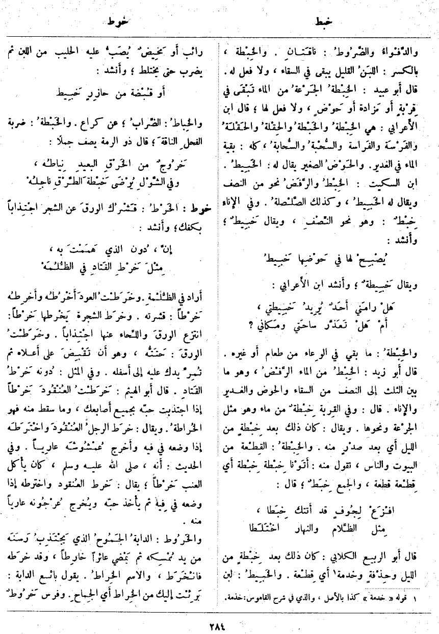 (2). قوله [خدمة] كذا بالأَصل، والذي في شرح القاموس: خذمة.