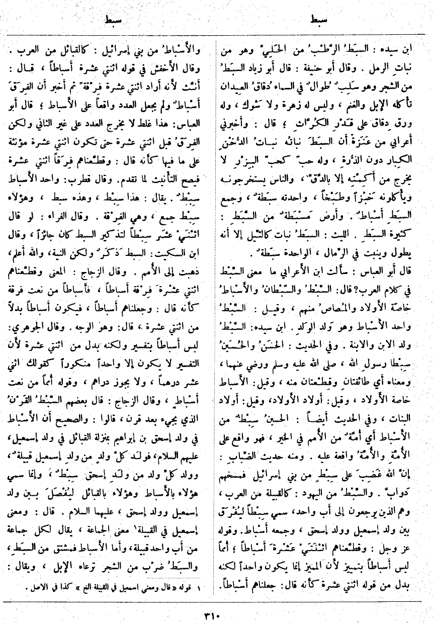 ، وَمَعْنَاهُ أَي طائفتانِ وقِطْعتان مِنْهُ، وَقِيلَ: الأَسباط خَاصَّةُ الأَولاد، وَقِيلَ: أَولاد الأَولاد، وَقِيلَ: أَولاد الْبَنَاتِ، وَفِي الْحَدِيثِ أَيضاً: