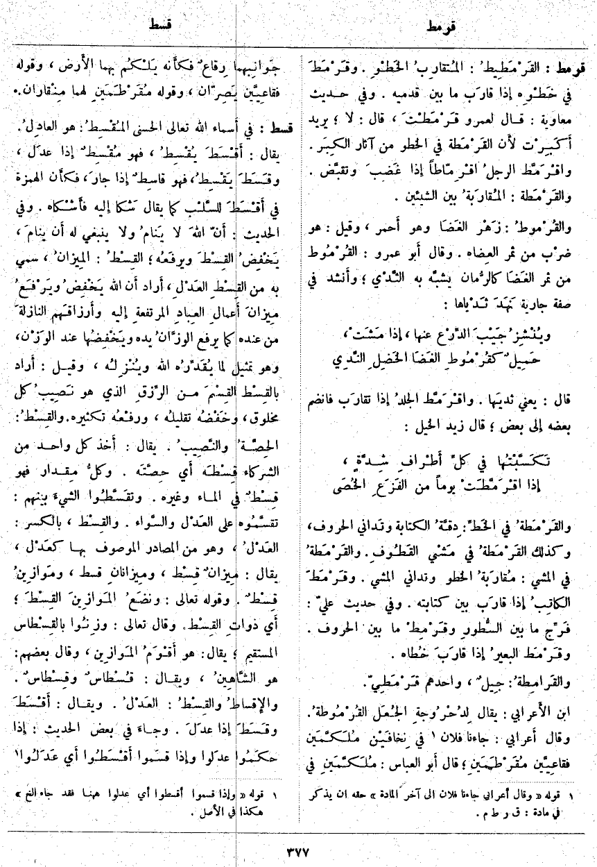 (1). قوله [وَقَالَ أَعرابي جَاءَنَا فُلَانٌ إِلى آخر المادة] حَقُّهُ أَن يُذْكَرَ فِي مادة: ق ر ط م.