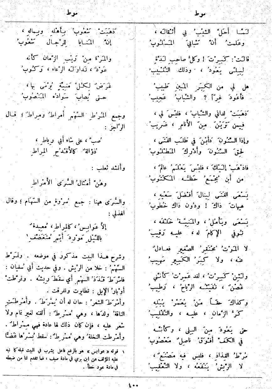 ذَهَبَتْ شَعُوبُ بِأَهْلهِ وبِمالهِ، ... إِنَّ المَنايا لِلرِّجال شَعُوبُ