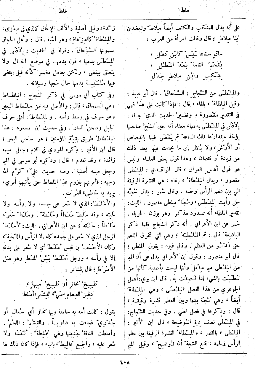 عَلَى أَنه يُقَالُ لِلْمَنْكِبِ وَالْكَتِفِ أَيضاً مِلاطٌ وَلِلْعَضُدَيْنِ ابْنَا مِلاطٍ؛ قَالَ وَقَالَتِ امرأَة مِنَ الْعَرَبِ: