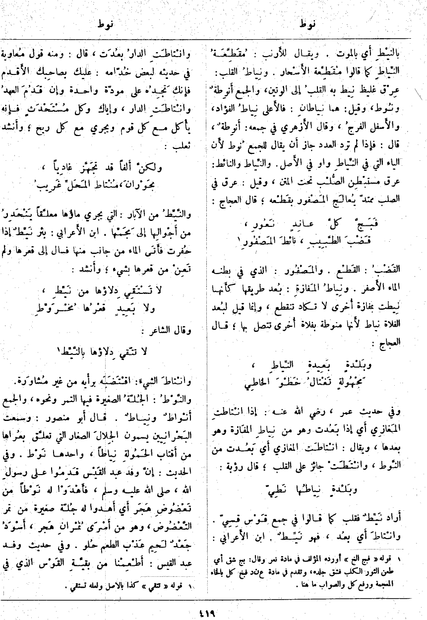 أَراد نَيِّطٌ فَقَلَبَ كَمَا قَالُوا فِي جَمْعِ قَوْس قِسِيّ وانْتاطَ أَي بعُد، فَهُوَ نَيِّطٌ. ابْنُ الأَعرابي: وانْتاطَتِ الدارُ بعُدَت، قَالَ: وَمِنْهُ قَوْلُ