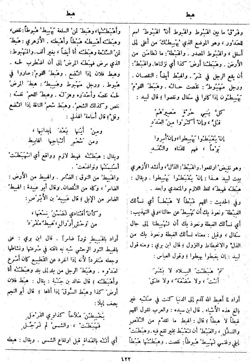وَهُوَ نقِيضُ ارْتَفَعُوا. والهَبْطُ: الذُّلُّ، وأَنشد الأَزهري بَيْتَ لَبِيدٍ هَذَا: إِنْ يُغْبَطُوا يَهْبِطوا. وَيُقَالُ: هَبطَه فهبطَ، لَفْظُ اللَّازِمِ وَالْمُتَعَدِّي وَاحِدٌ. وَفِي الْحَدِيثِ: