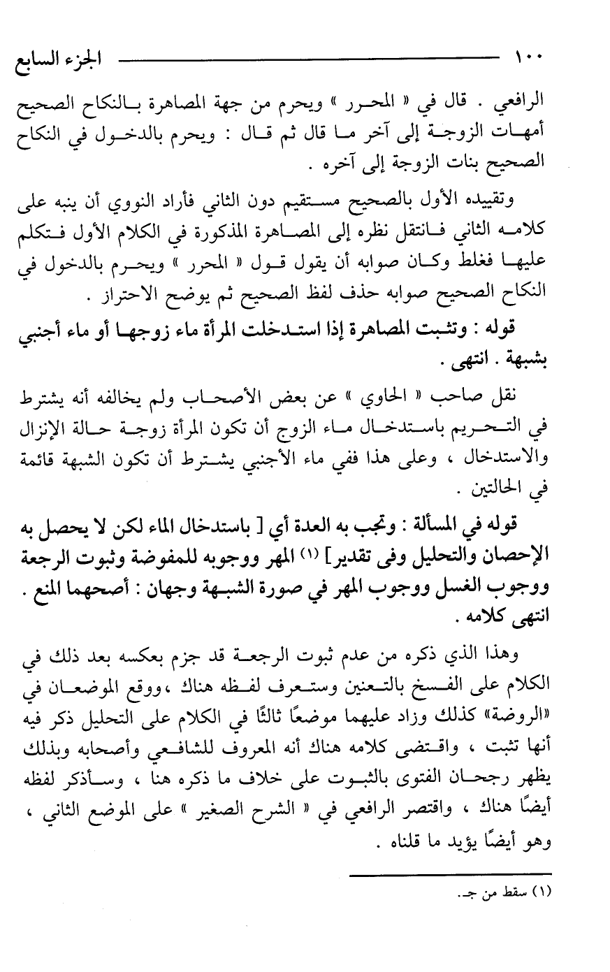 وهذا الذي ذكره من عدم ثبوت الرجعة قد جزم بعكسه بعد ذلك في الكلام على الفسخ بالتعنين وستعرف لفظه هناك، ووقع الموضعان في "الروضة" كذلك وزاد عليهما موضعًا ثالثًا في الكلام على التحليل ذكر فيه أنها تثبت، واقتضى كلامه هناك أنه المعروف للشافعي وأصحابه وبذلك يظهر رجحان الفتوى بالثبوت على خلاف ما ذكره هنا، وسأذكر لفظه أيضًا هناك، واقتصر الرافعي في "الشرح الصغير" على الموضع الثاني، وهو أيضًا يؤيد ما قلناه.