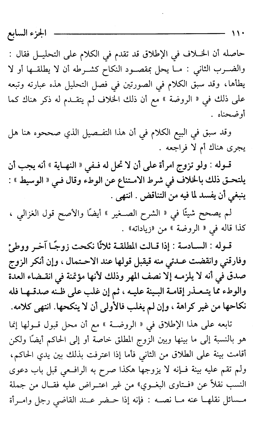 حاصله أن الخلاف في الإطلاق قد تقدم في الكلام على التحليل فقال: والضرب الثاني: ما يحل بمقصود النكاح كشرطه أن لا يطلقها أو لا يطأها، وقد سبق الكلام في الصورتين في فصل التحليل هذه عبارته وتبعه على ذلك في "الروضة" مع أن ذلك الخلاف لم يتقدم له ذكر هناك كما أوضحناه.