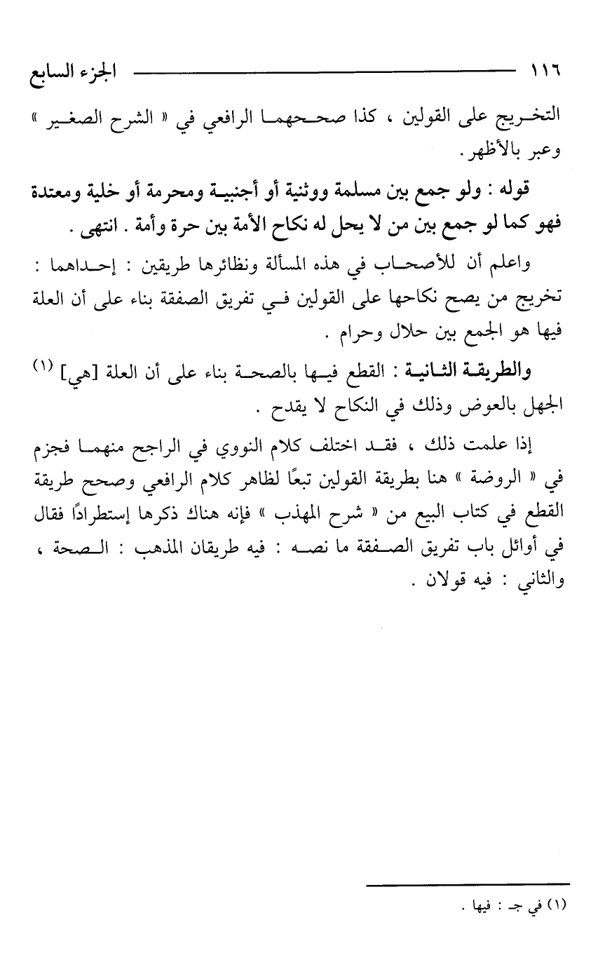 واعلم أن للأصحاب في هذه المسألة ونظائرها طريقين: إحداهما: تخريج من يصح نكاحها على القولين في تفريق الصفقة بناء على أن العلة فيها هو الجمع بين حلال وحرام.