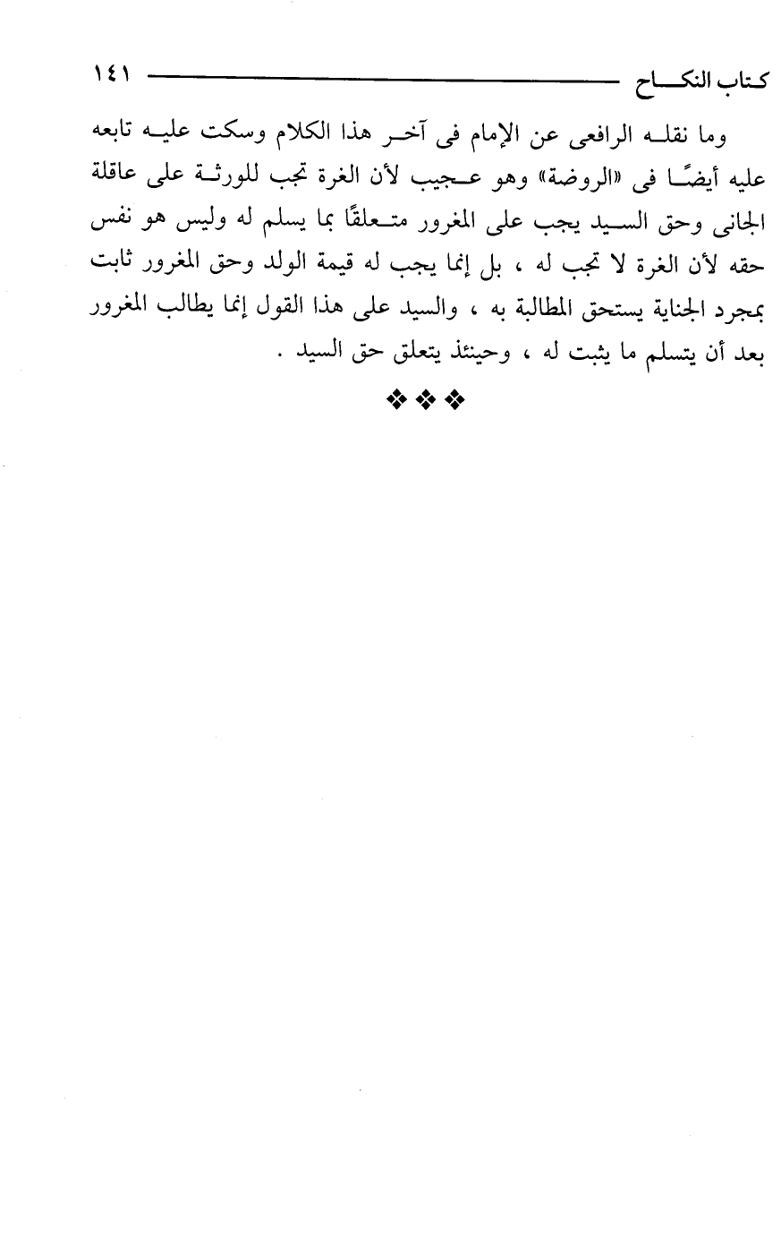 وما نقله الرافعى عن الإمام في آخر هذا الكلام وسكت عليه تابعه عليه أيضًا في "الروضة" وهو عجيب لأن الغرة تجب للورثة على عاقلة الجاني وحق السيد يجب على المغرور متعلقًا بما يسلم له وليس هو نفس حقه لأن الغرة لا تجب له، بل إنما يجب له قيمة الولد وحق المغرور ثابت بمجرد الجناية يستحق المطالبة به، والسيد على هذا القول إنما يطالب المغرور بعد أن يتسلم ما يثبت له، وحينئذ يتعلق حق السيد.