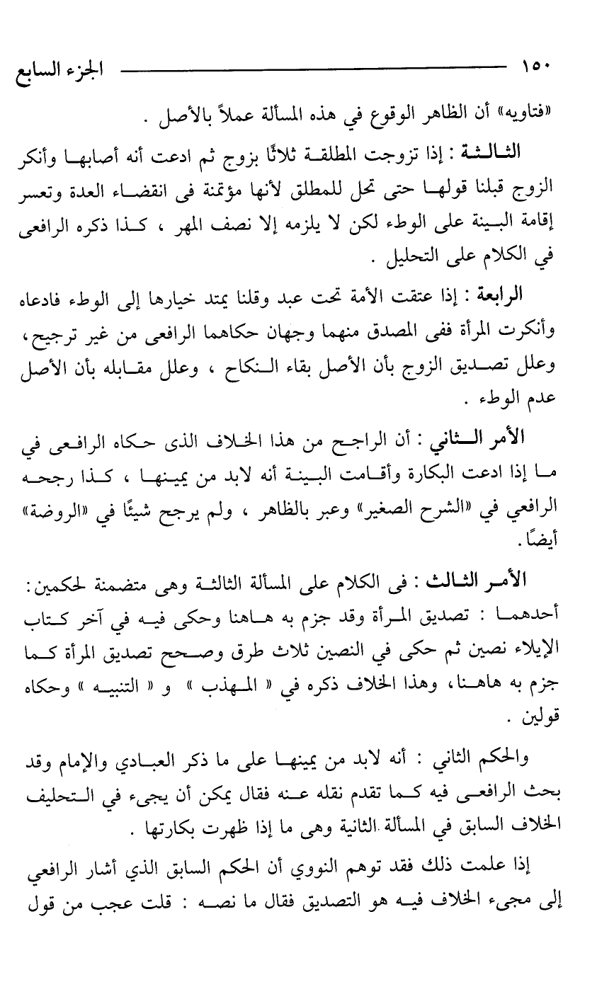 الأمر الثاني: أن الراجح من هذا الخلاف الذى حكاه الرافعى في ما إذا ادعت البكارة وأقامت البينة أنه لابد من يمينها، كذا رجحه الرافعي في "الشرح الصغير" وعبر بالظاهر، ولم يرجح شيئًا في "الروضة" أيضًا.
