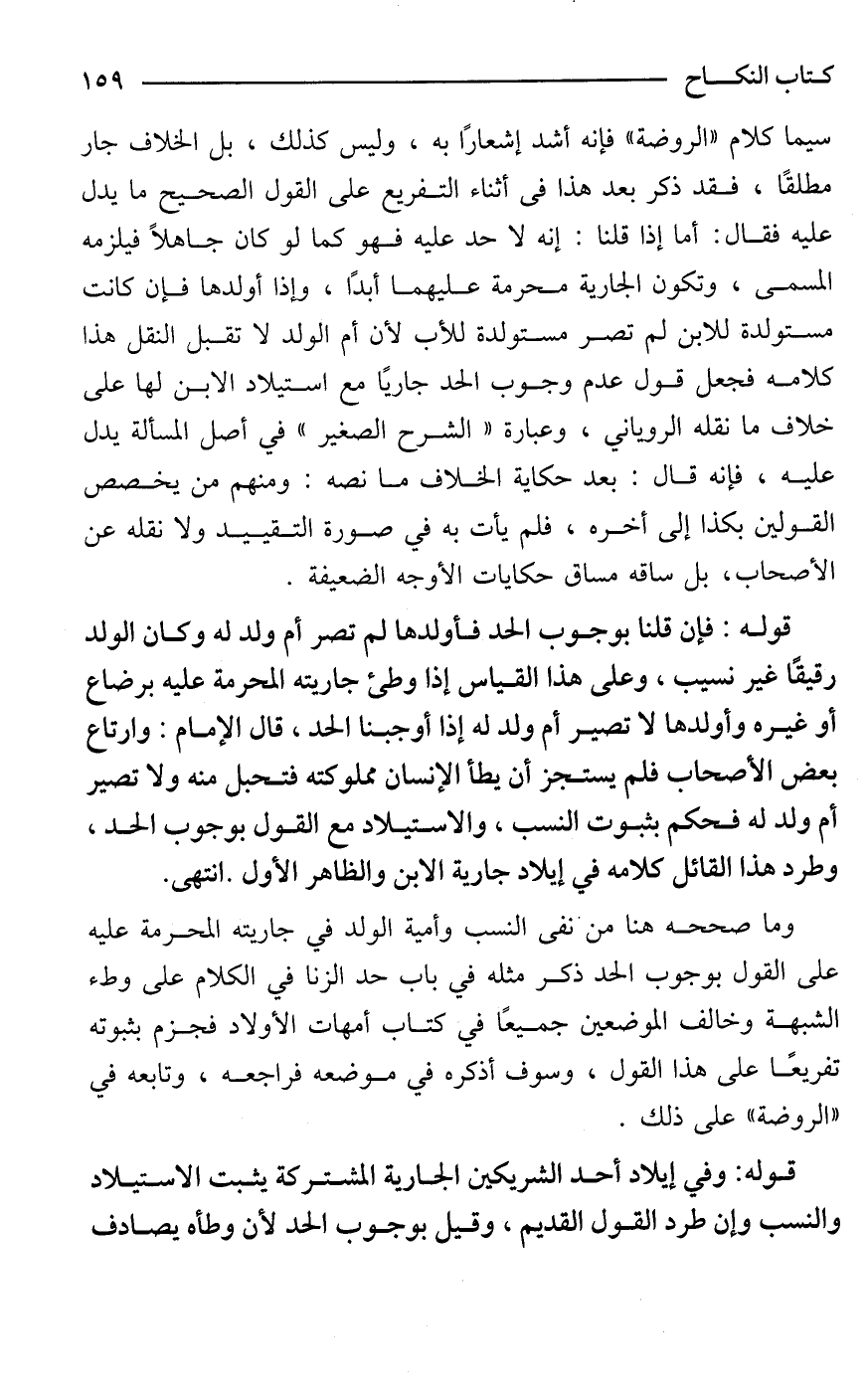 سيما كلام "الروضة" فإنه أشد إشعارًا به، وليس كذلك، بل الخلاف جار مطلقًا، فقد ذكر بعد هذا في أثناء التفريع على القول الصحيح ما يدل عليه فقال: أما إذا قلنا: إنه لا حد عليه فهو كما لو كان جاهلًا فيلزمه المسمى، وتكون الجارية محرمة عليهما أبدًا، وإذا أولدها فإن كانت مستولدة للابن لم تصر مستولدة للأب لأن أم الولد لا تقبل النقل هذا كلامه فجعل قول عدم وجوب الحد جاريًا مع استيلاد الابن لها على خلاف ما نقله الروياني، وعبارة "الشرح الصغير" في أصل المسألة يدل عليه، فإنه قال: بعد حكاية الخلاف ما نصه: ومنهم من يخصص القولين بكذا إلى أخره، فلم يأت به في صورة التقييد ولا نقله عن الأصحاب، بل ساقه مساق حكايات الأوجه الضعيفة.