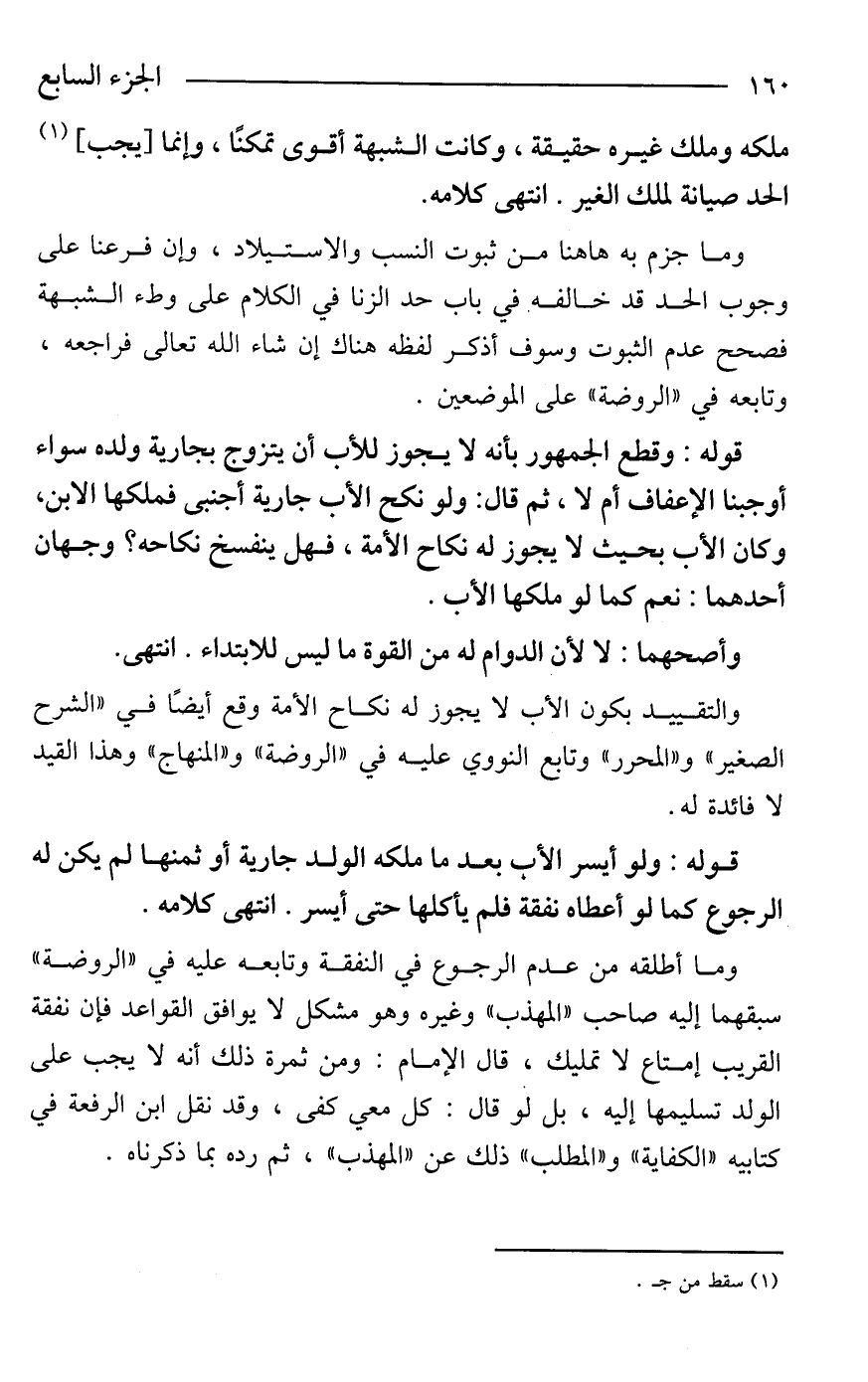 والتقييد بكون الأب لا يجوز له نكاح الأمة وقع أيضًا في "الشرح الصغير" و"المحرر" وتابع النووي عليه في "الروضة" و"المنهاج" وهذا القيد لا فائدة له.