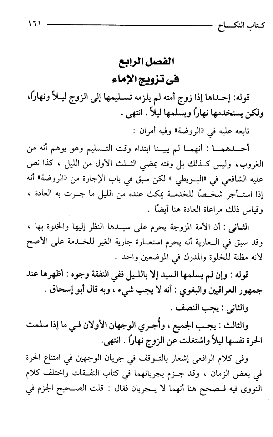 قوله: إحداها إذا زوج أمته لم يلزمه تسليمها إلى الزوج ليلًا ونهارًا، ولكن يستخدمها نهارًا ويسلمها ليلًا. انتهى.