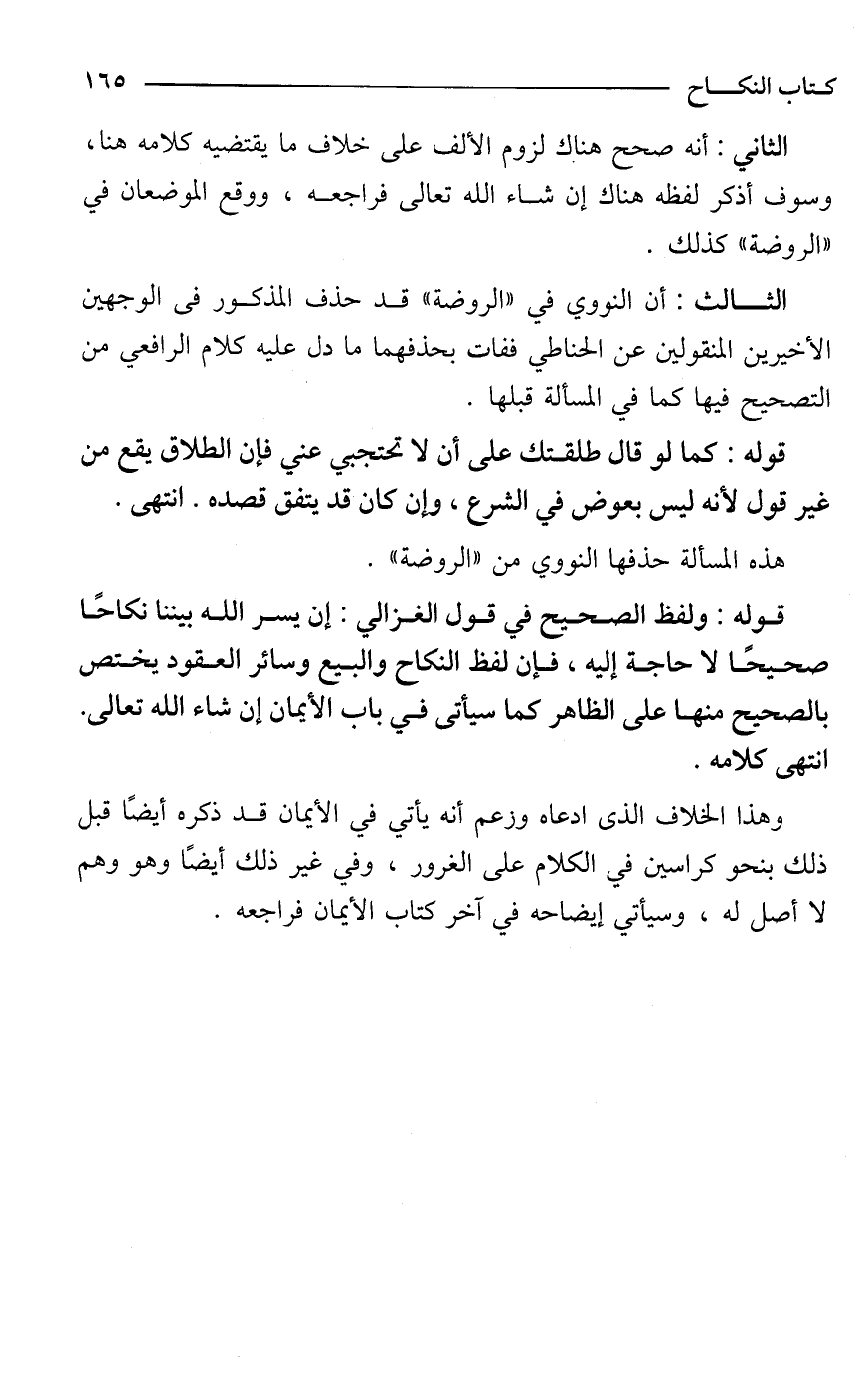 الثاني: أنه صحح هناك لزوم الألف على خلاف ما يقتضيه كلامه هنا، وسوف أذكر لفظه هناك إن شاء الله تعالى فراجعه، ووقع الموضعان في "الروضة" كذلك.