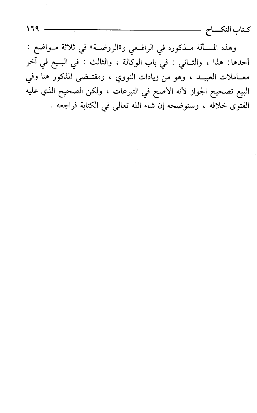 وهذه المسألة مذكورة في الرافعي و"الروضة" في ثلاثة مواضع: أحدها: هذا، والثاني: في باب الوكالة، والثالث: في البيع في آخر معاملات العبيد، وهو من زيادات النووي، ومقتضى المذكور هنا وفي البيع تصحيح الجواز لأنه الأصح في التبرعات، ولكن الصحيح الذي عليه الفتوى خلافه، وسنوضحه إن شاء الله تعالى في الكتابة فراجعه.