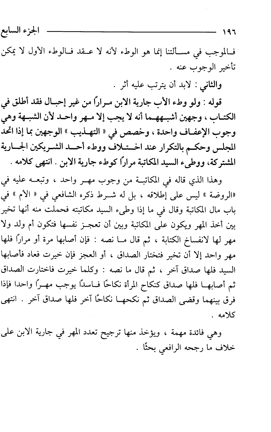 وهي فائدة مهمة، ويؤخذ منها ترجيح تعدد المهر في جارية الابن على خلاف ما رجحه الرافعي بحثًا.