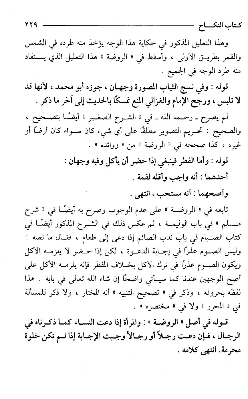 قوله: وفي نسج الثياب المصورة وجهان، جوزه أبو محمد، لأنها قد لا تلبس، ورجح الإمام والغزالي المنع تمسكًا بالحديث إلى آخر ما ذكر.