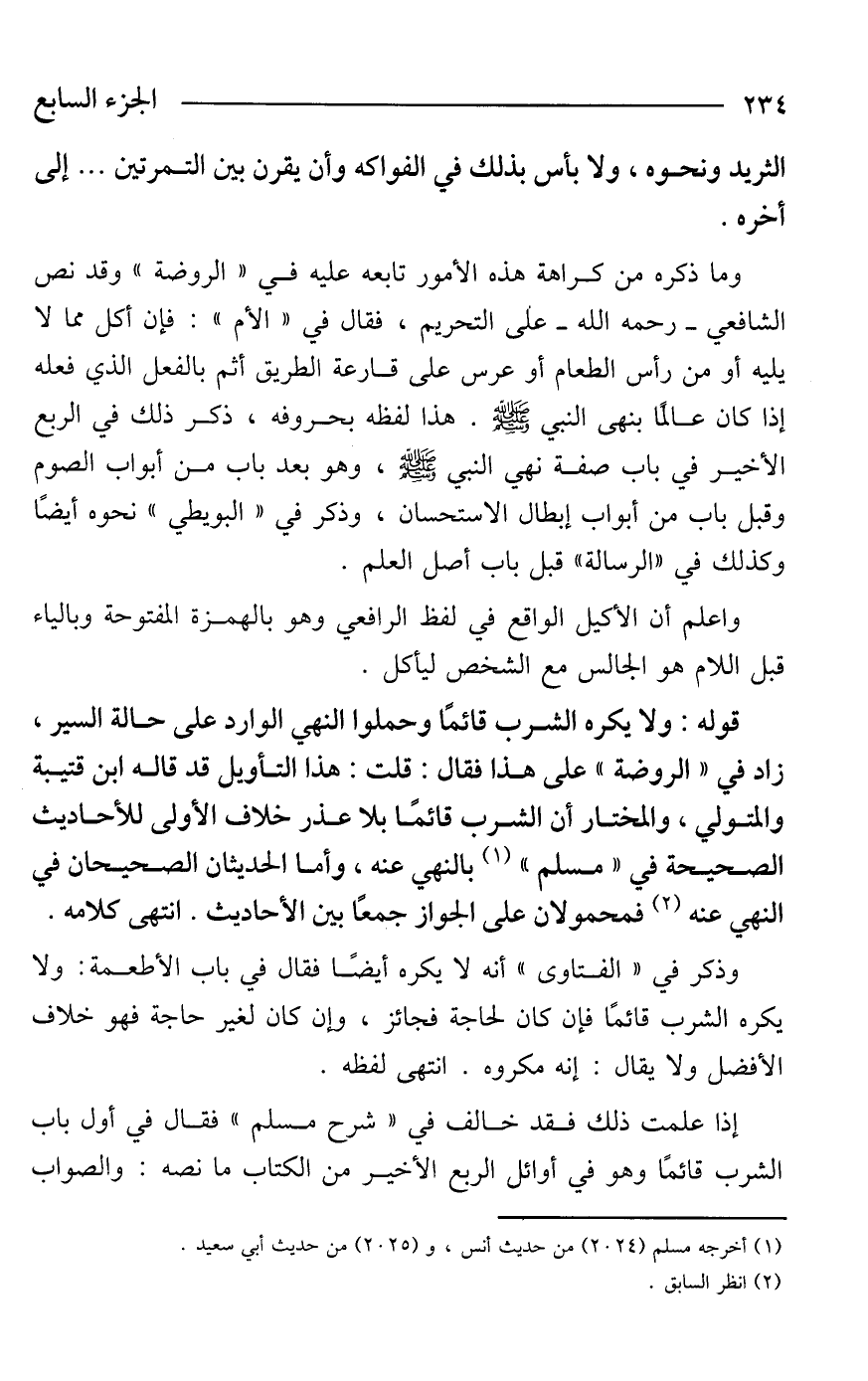 إذا علمت ذلك فقد خالف في "شرح مسلم" فقال في أول باب الشرب قائمًا وهو في أوائل الربع الأخير من الكتاب ما نصه: والصواب