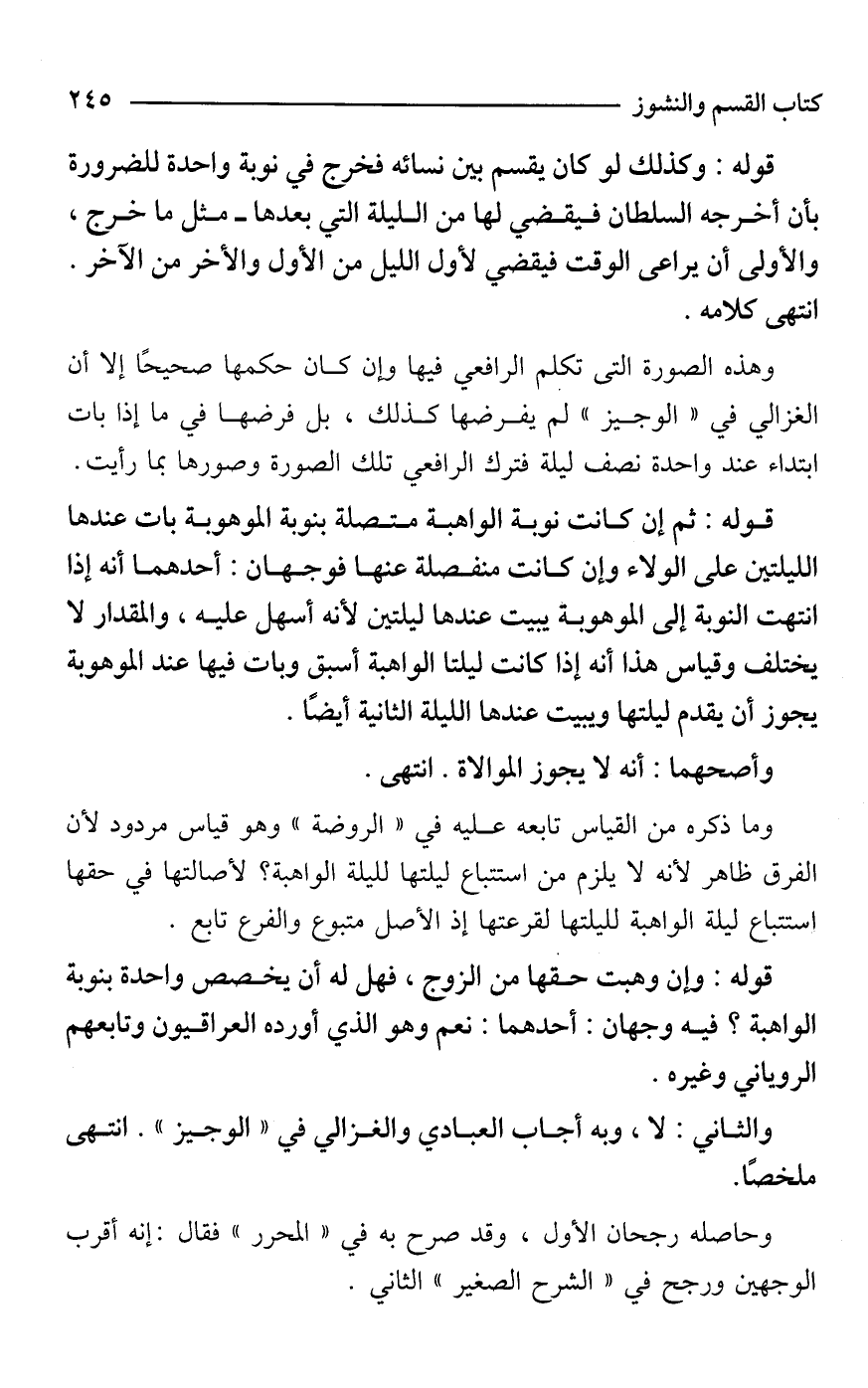 وهذه الصورة التى تكلم الرافعي فيها وإن كان حكمها صحيحًا إلا أن الغزالي في "الوجيز" لم يفرضها كذلك، بل فرضها في ما إذا بات ابتداء عند واحدة نصف ليلة فترك الرافعي تلك الصورة وصورها بما رأيت.