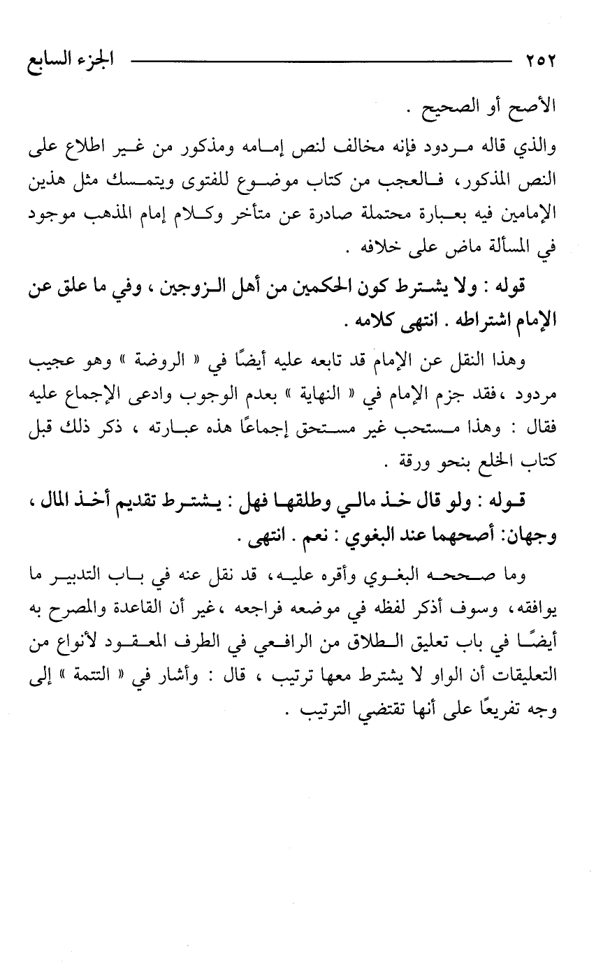 وهذا النقل عن الإمام قد تابعه عليه أيضًا في "الروضة" وهو عجيب مردود، فقد جزم الإمام في "النهاية" بعدم الوجوب وادعى الإجماع عليه فقال: وهذا مستحب غير مستحق إجماعًا هذه عبارته، ذكر ذلك قبل كتاب الخلع بنحو ورقة.