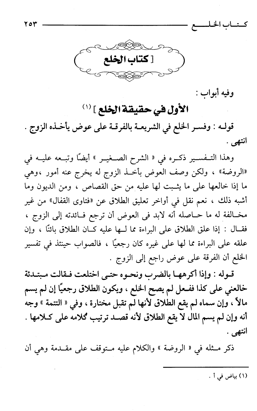الباب الأول في حقيقة الخلع] (¬1)